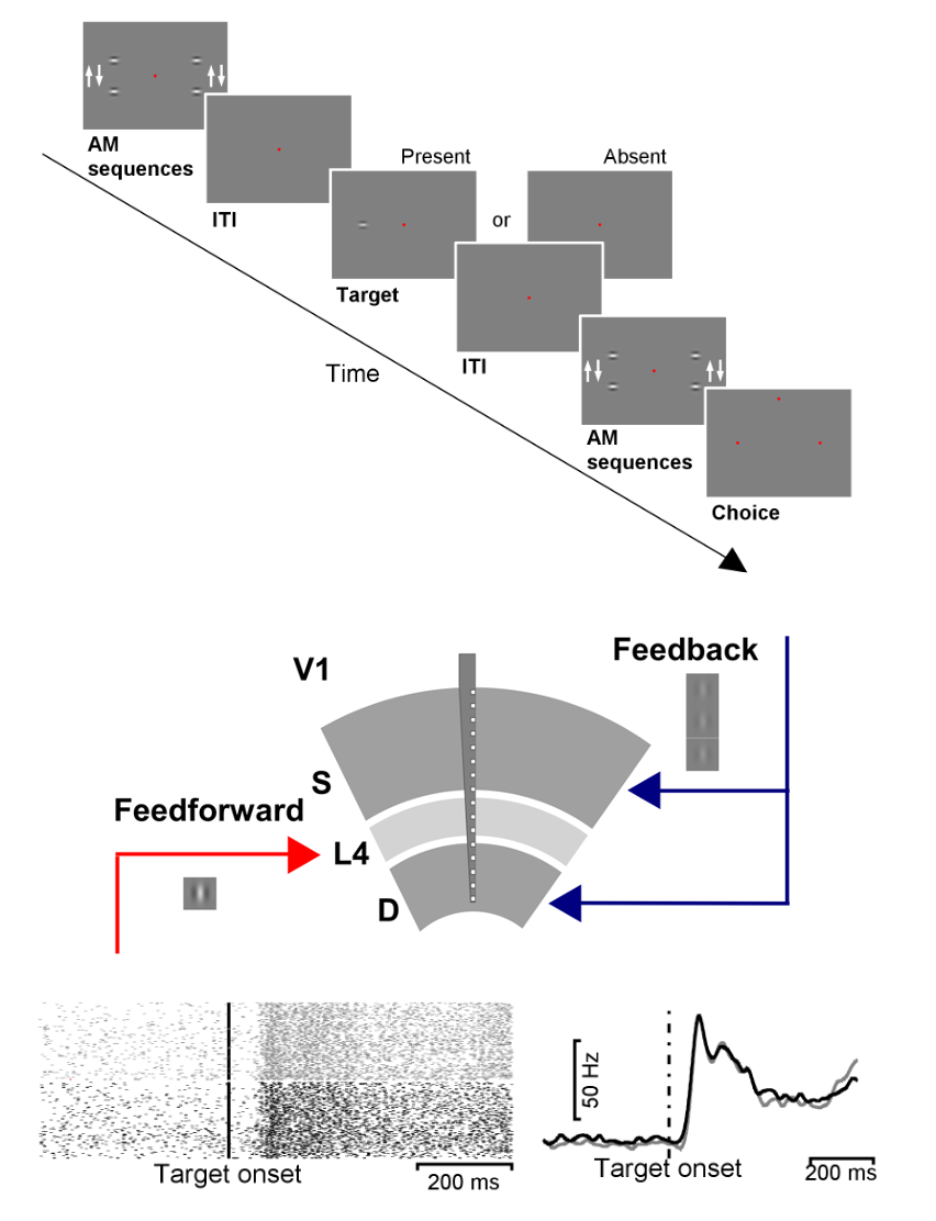 Using apparent motion perception task, we investigate the interactions between feedforward and feedback signals that happen in cortical laminar circuitry